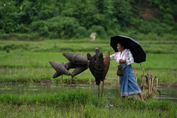 Village walk to interact with Mishing/Bodo communities (weaving demo, rice beer tasting)